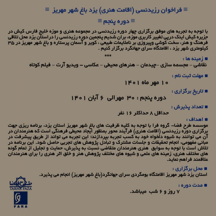 • قابل توجه هنرمندان علاقمند به اقامت هنری